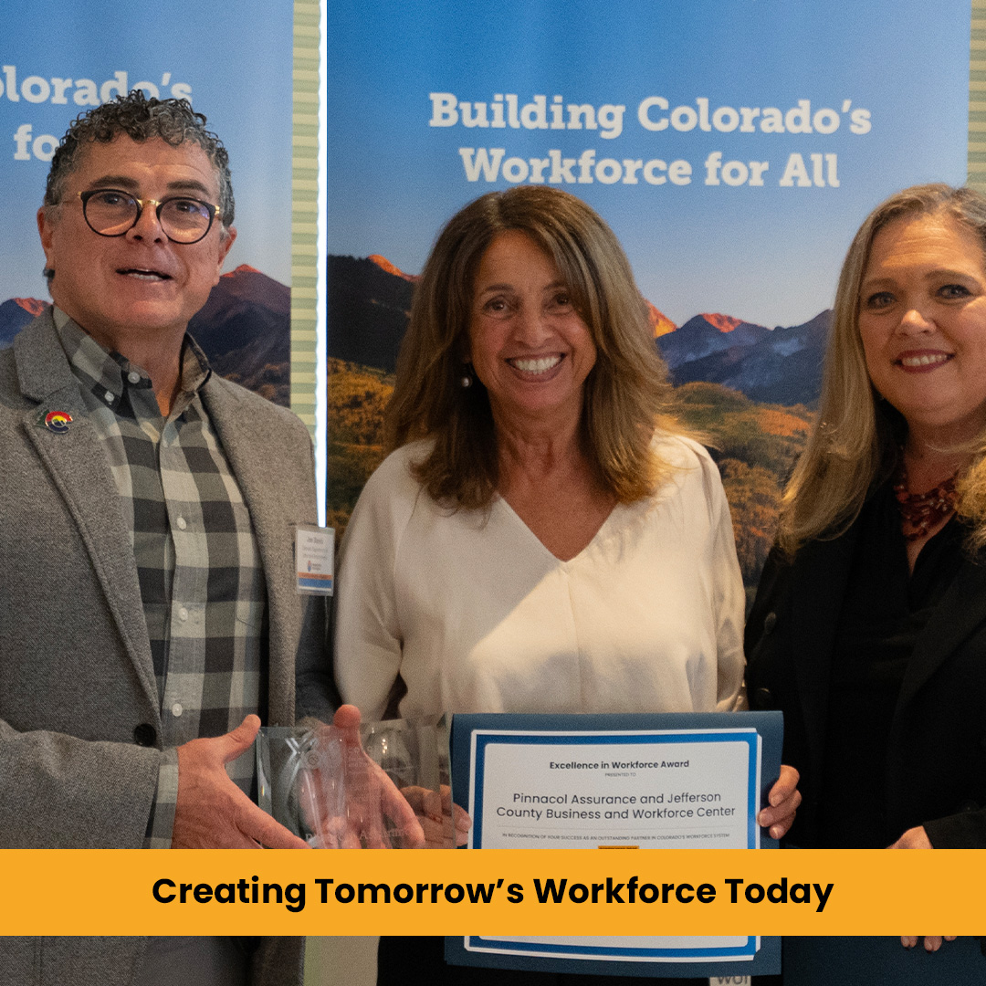 Pictured from left to right: Joe Barela, Executive Director of CDLE; Nevine Laughlin, Pinnacol Assurance; Kelly Folks, Director of the Division of Employment & Training at CDLE.